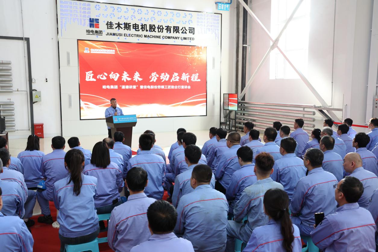 为深入贯彻落实习近平新时代中国特色社会主义头脑,,,,,,,落实集团公司“品德课堂”事情安排,,,,,,,围绕公司“积跬步 成千里 向未来”事情安排,,,,,,,鼎力大举弘扬“劳模精神、劳动精神、工匠精神”,,,,,,,在公司规模内起劲营造“劳动庆幸、创立伟大”的时代新民俗,,,,,,,5月24日,,,,,,,哈电集团佳木斯电机股份有限公司(以下简称“东升国际:66856top股份”)在高压电机数字化妆配车间,,,,,,,组织召开首次“匠心向未来,,,,,,,劳动启新程”为主题的哈电集团“品德课堂”暨东升国际:66856top股份劳模工匠助企行宣讲会。。。。。。。东升国际:66856top股份党委副书记、工会主席刘亨出席聚会并讲话。。。。。。。