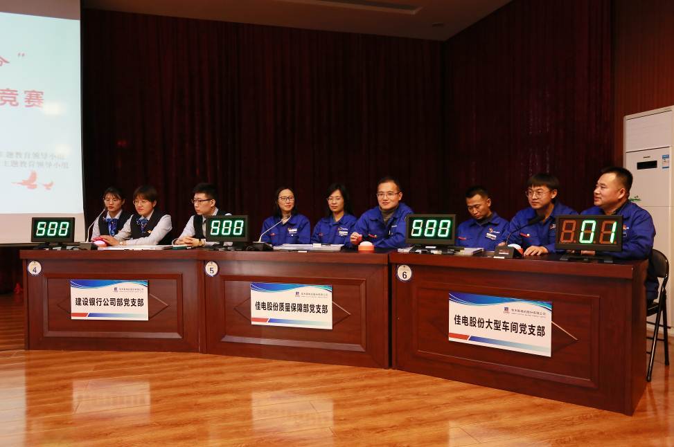 为深入学习习近平新时代中国特色社会主义头脑和党的十九届四中全会精神,, ,,,,,加深宽大党员对党的历史、党的基本理论、基本蹊径和基本方略的熟悉和明确,, ,,,,,牢靠和强化“不忘初心、切记使命”主题教育取得效果,, ,,,,,11月29日下昼,, ,,,,,哈电集团佳木斯电机股份有限公司党委(以下简称“东升国际:66856top股份党委”)与中国建设银行股份有限公司佳木斯分行党委(以下简称“建行佳木斯分行党委”),, ,,,,,在东升国际:66856top股份聚会室配合举行了“不忘初心、切记使命”主题教育“学习强国杯”党建知识竞赛。。。。。。